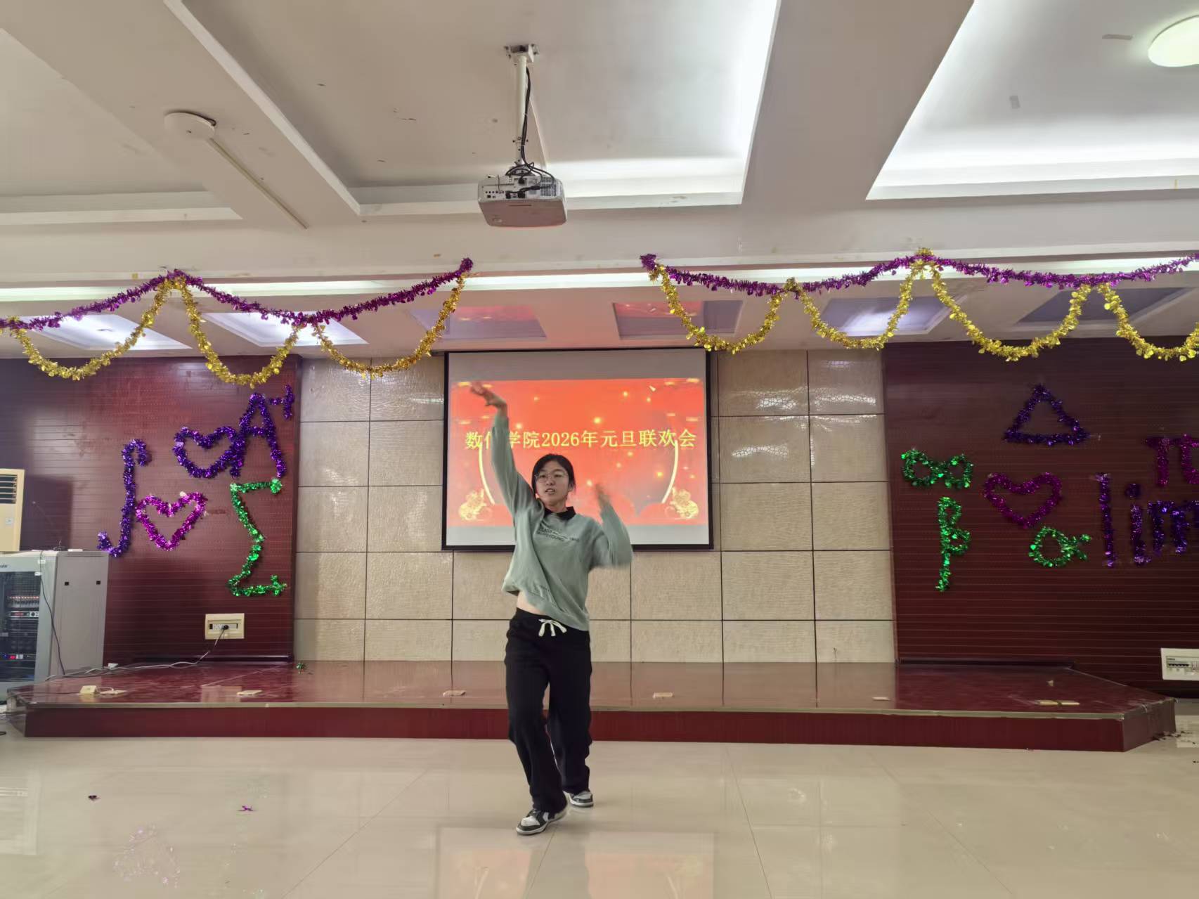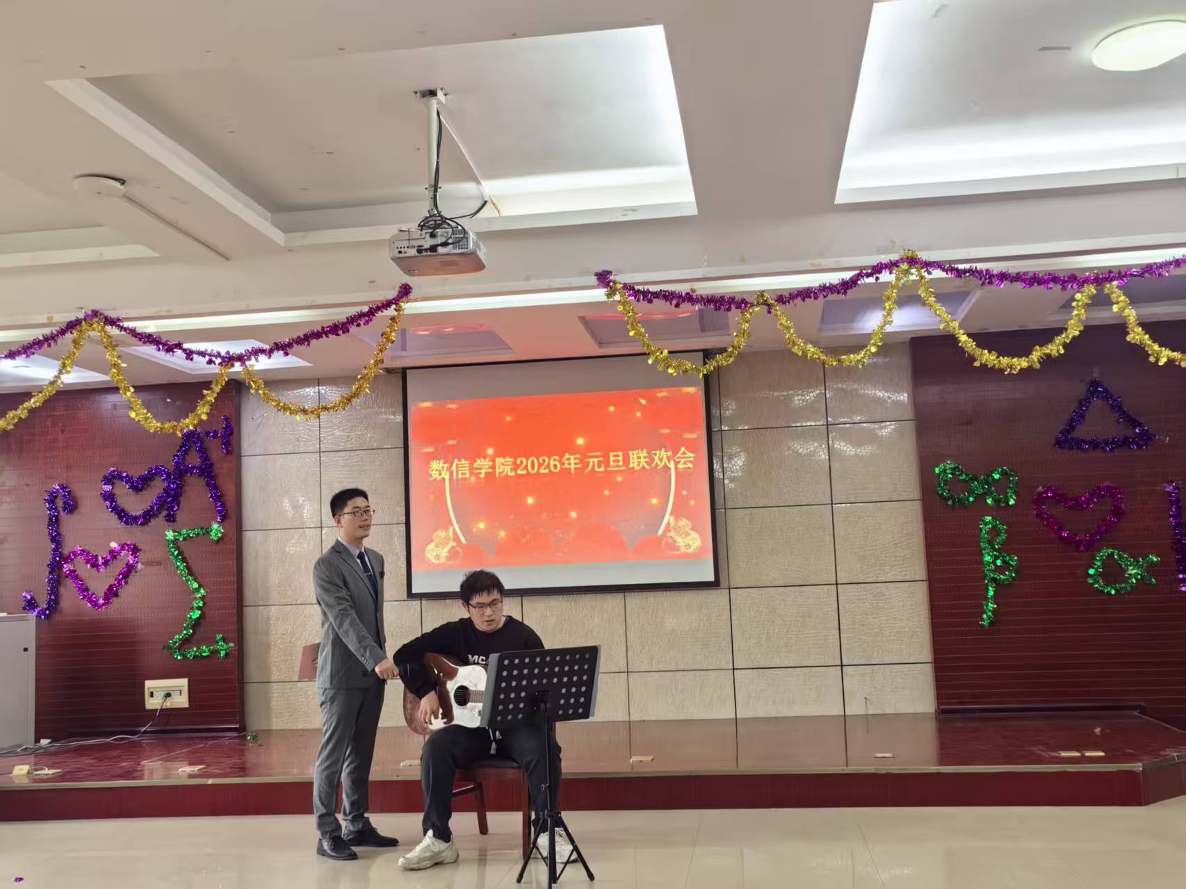 本网讯(通讯员 关静)光荏苒,岁律更新。为迎接2026年元旦的到来,营造欢乐祥和的节日氛围,增强师生凝聚力,12月31日下午,数信学院在3401会议室举办2026年元旦联欢会。整场联欢会由王艳芳、赵龙斌两位老师倾情主持,师生们欢聚一堂,用歌舞、朗诵、器乐演奏等丰富多样的形式,共庆新年伊始,共话美好未来。