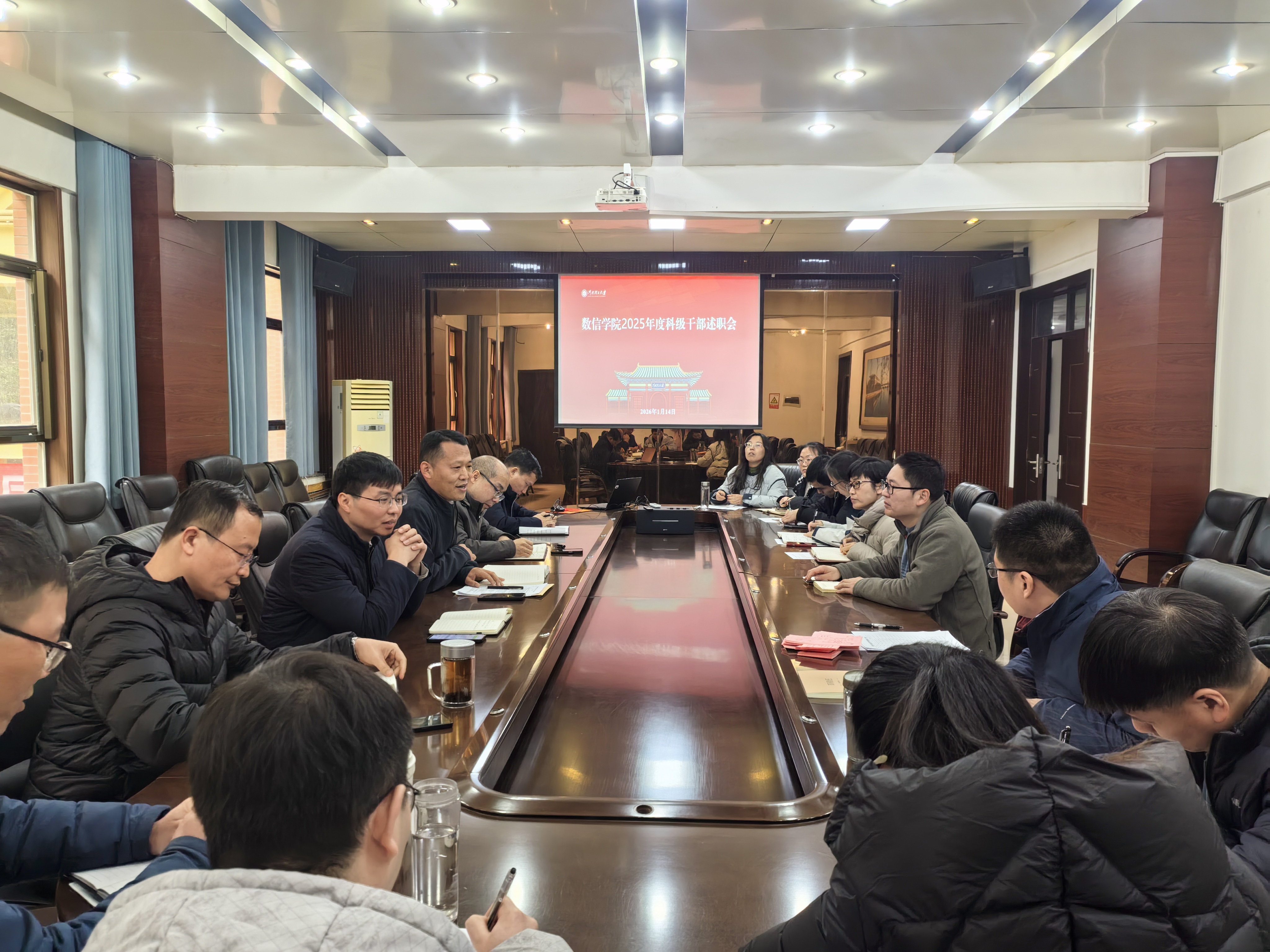 本网讯(通讯员 关静)1月14日上午,数信学院在二楼会议室召开2025年度科级干部述职评议会。全体院领导、各科级干部、党支部书记、系部中心主任参会。院党委书记刘春德主持会议,院长毋海根对各位科级述职情况逐一点评,对下一步工作提出要求。