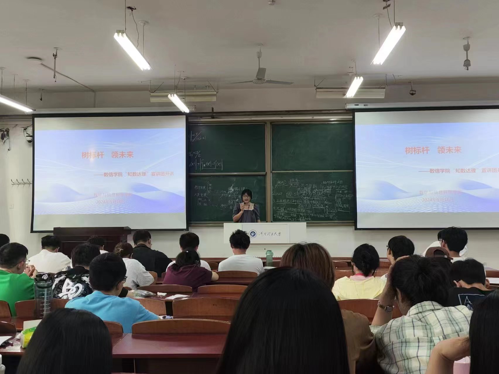本网讯(通讯员 王孝华 李智)为发挥朋辈群体的榜样引领作用,引导数信学院学子积极探索数学的奥秘,进一步激发学生的数学专业兴趣,5月16日,数信学院知“数”达理宣讲团正式开讲。