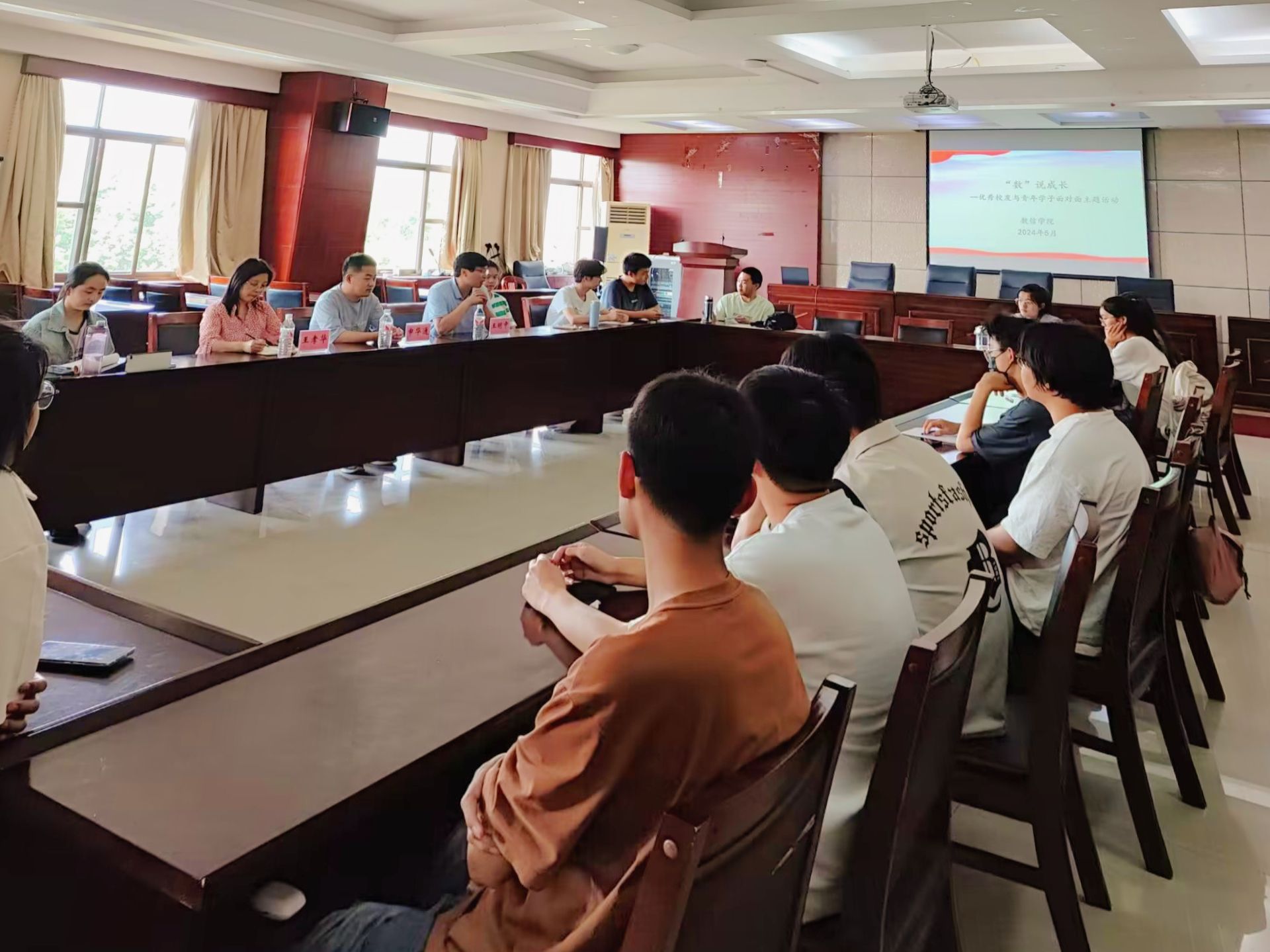本网讯(通讯员 王孝华)为做好低年级学生的职业规划教育,帮助学生树立正确的职业观,科学规划大学生活,5月20日,数信学院在该院3401会议室举办“数”说人生——优秀校友与青年学子面对面主题活动。此次活动特邀数信学院2017级优秀校友、山东大学在读博士生申华通作交流分享,该院党委副书记王明中、辅导员老师、班长联席会成员以及数实验2201班全体同学参加。