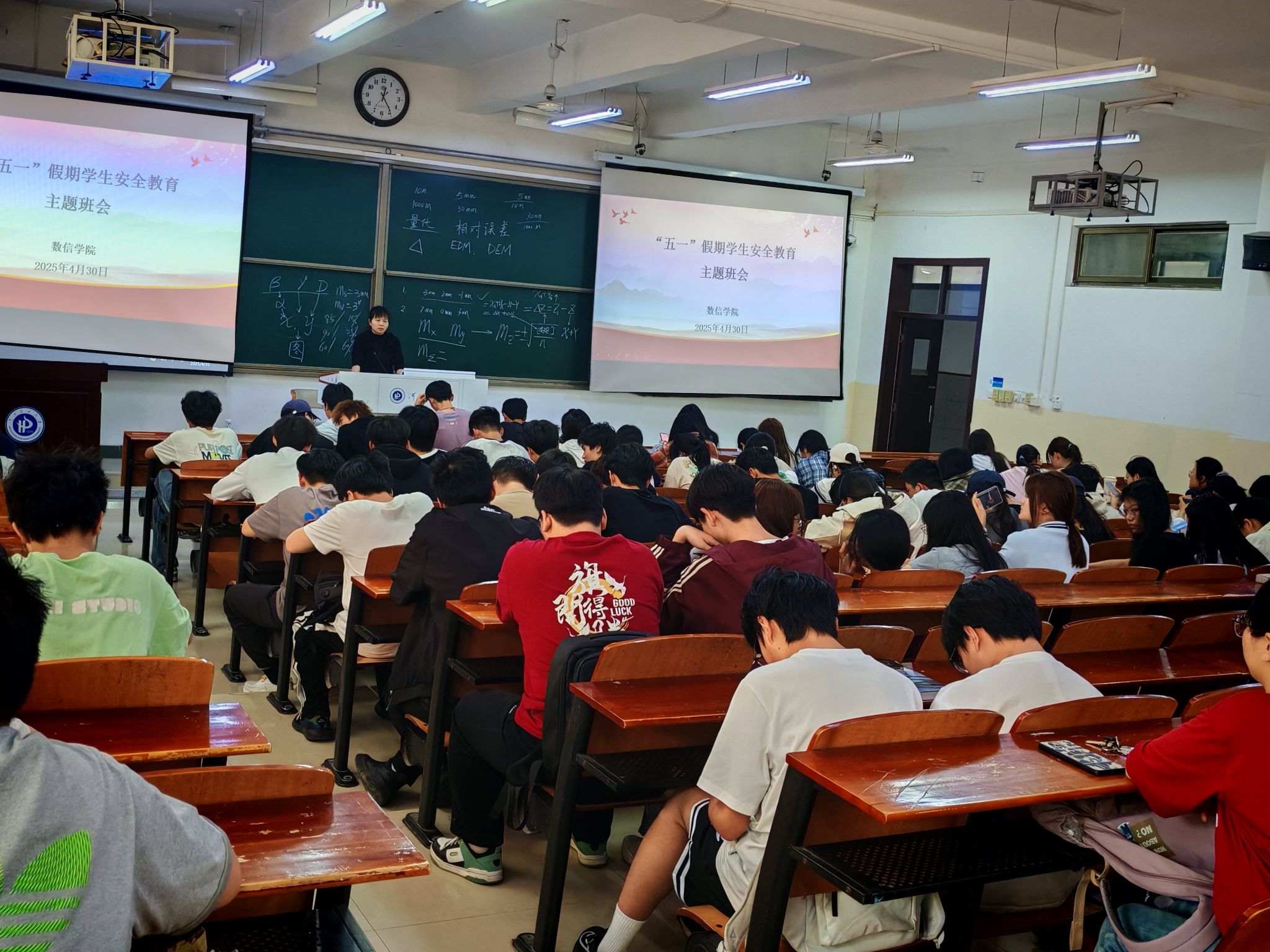 为切实做好放假期间学生安全教育管理工作,落实各项安全措施,确保学生度过一个平安、愉快的假期,4月30日,数信学院组织全体在校生召开学生“五一”国际劳动节假期安全教育主题班会。本次班会由各年级辅导员主持。