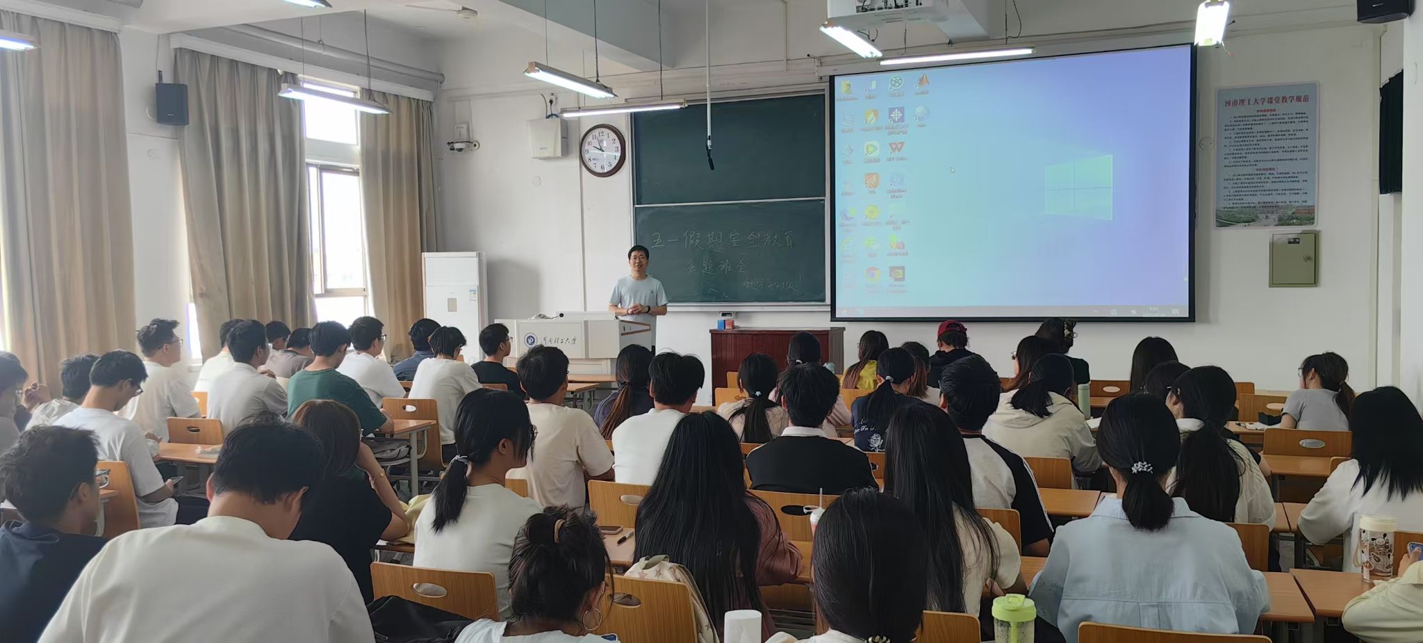 班会上,各辅导员首先强调了安全教育的重要性,指出假期是安全事故易发时段,大家一定要防患于未然。其次,老师们从交通安全、防火、防盗、防溺水、防诈骗、防传销等方面结合具体案例开展安全知识讲解。引导学生增强自身安全防范意识和自我保护能力。最后,辅导员还特别强调了假期期间的饮食安全和心理健康,倡导同学们合理安排作息,保持健康的生活方式。