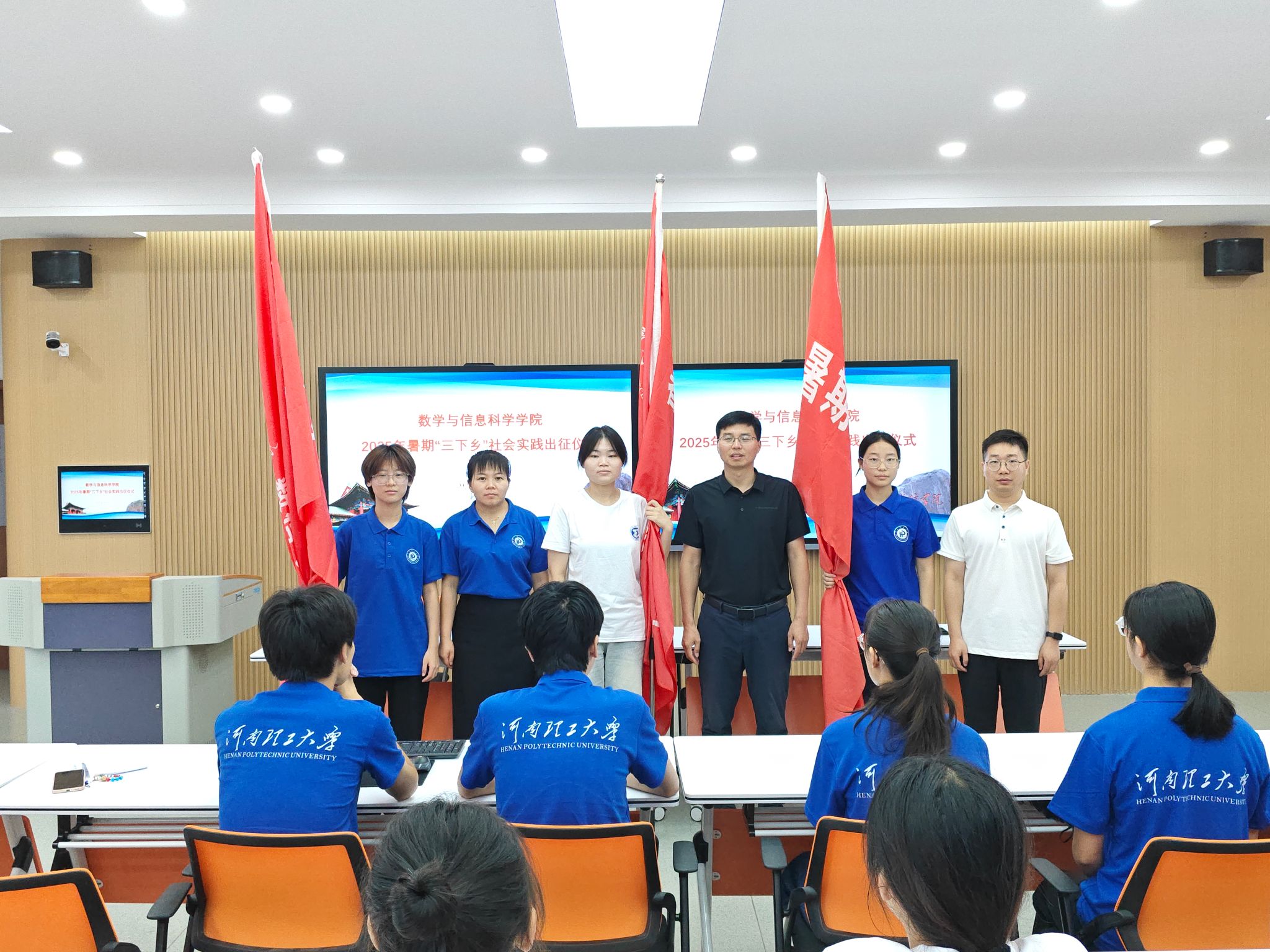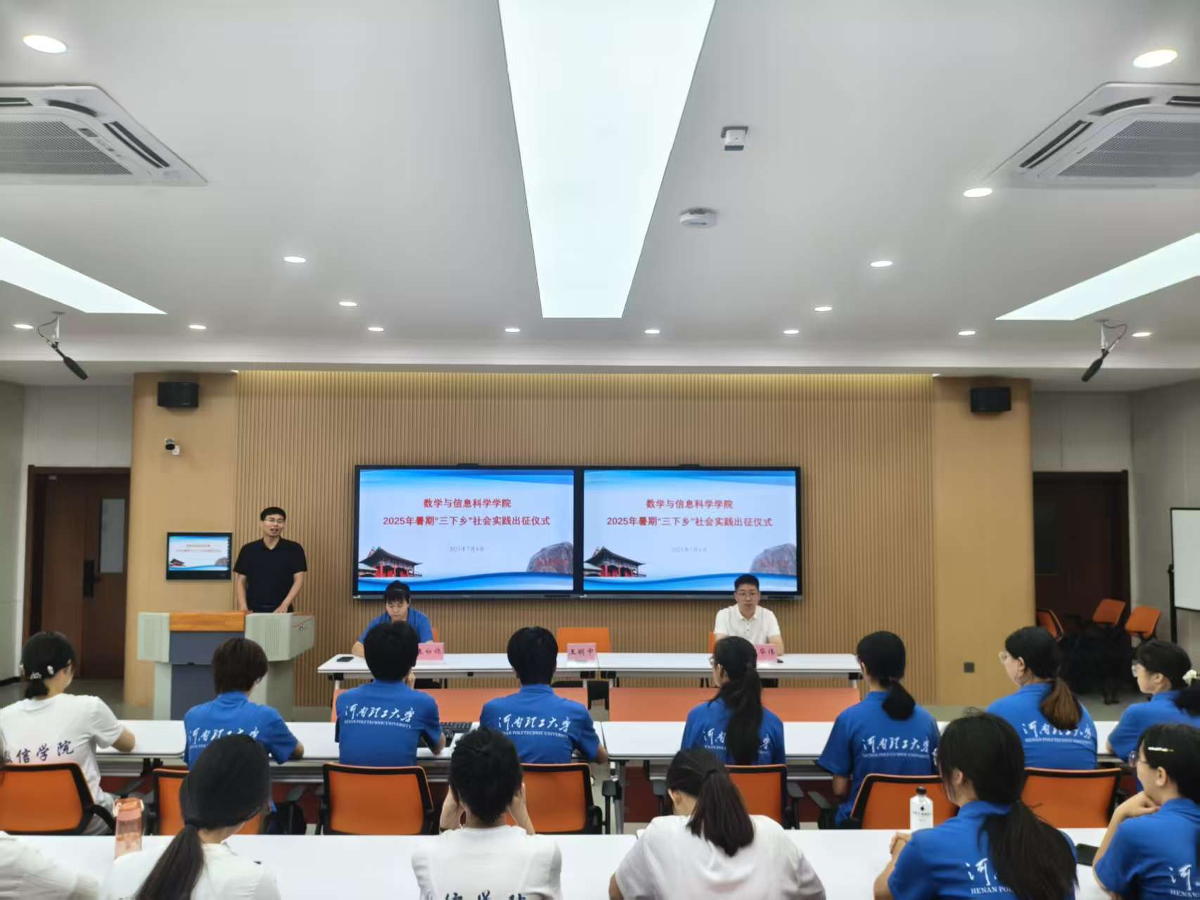 (赵梦卓 曹益豪)7月4日上午,数信学院2025年暑期“三下乡”社会实践活动出征仪式在三号教学楼3205智慧教室举行。院党委副书记王明中出席仪式并讲话。社会实践指导老师代表王白鸽和实践队员参加。院团委副书记胡华伟主持出征仪式。