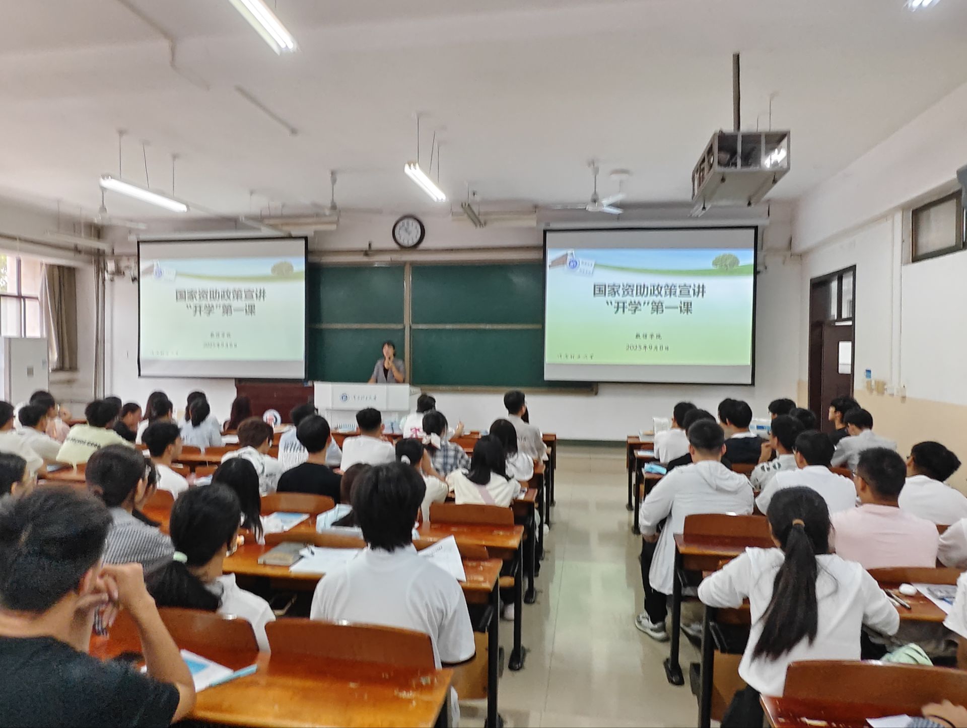 宣讲会上,老师们作了系统而细致的解读,内容涵盖校园地国家贷款的申请条件与办理流程、家庭经济困难学生的认定程序、国家奖助学金严谨的评选标准与环节、勤工助学岗位的申请以及大学生应征入伍服兵役相关的教育资助政策等。讲解条理清晰,重点突出,为同学们勾勒出一幅完整的“奖、助、贷、勤、补、免”多元化资助体系蓝图。同时,为做好资助育人工作,老师们通过具体案例,着重强调了诚信申请的重要性,引导同学们树立正确的价值观和消费观,勉励大家将暂时的困难视为成长的磨砺,将国家的关怀转化为奋发学习的动力,争取实现自立自强。