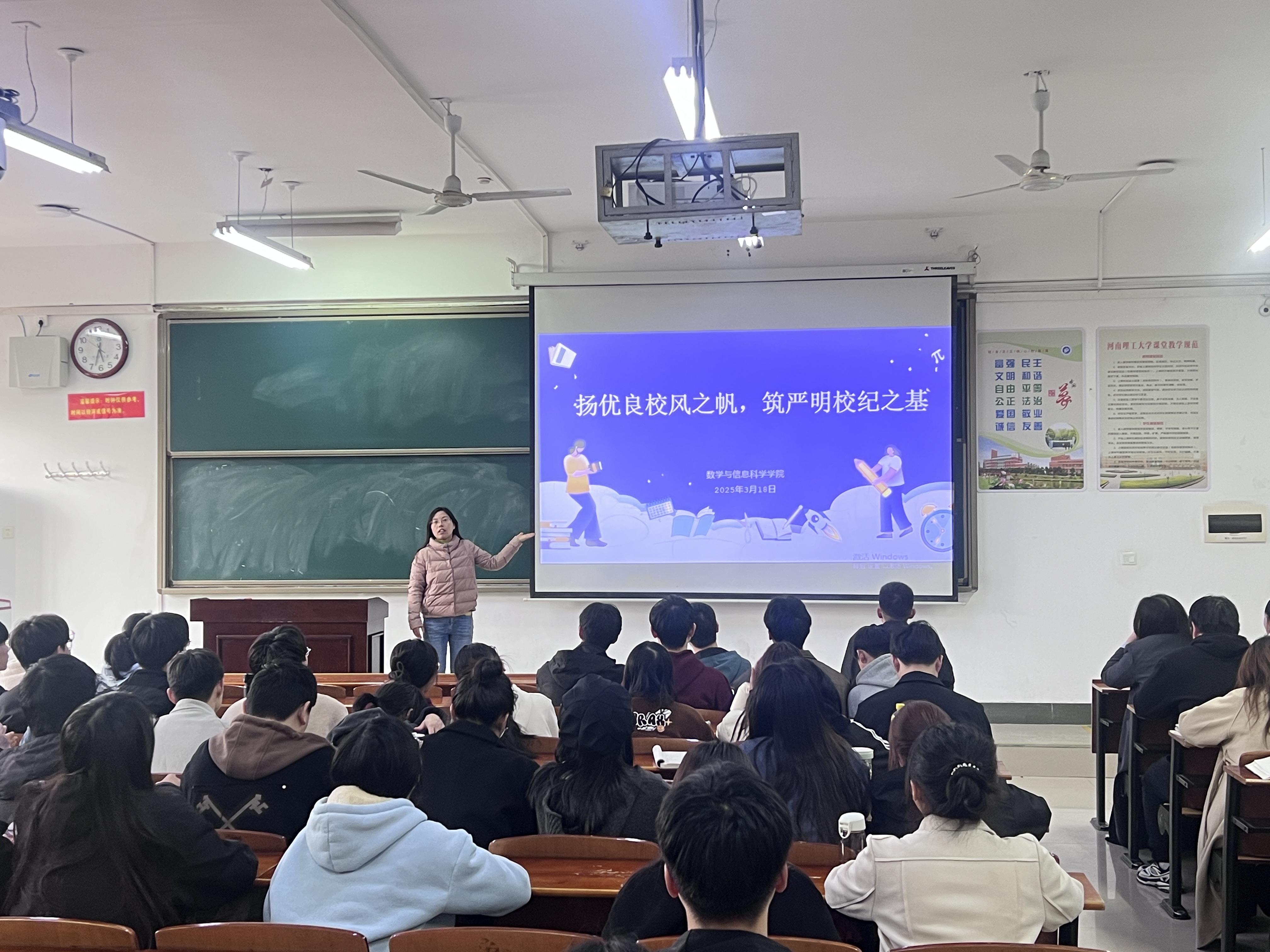 本网讯(通讯员 李玟玟)为引导学生端正学习态度、严守校纪规范,3月22日至24日,数信学院组织各年级分批次开展了“扬优良学风之帆 筑严明校纪之基”主题班会。